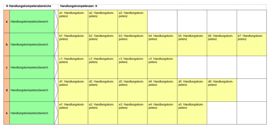 Handlungskompetenzen: Handlungskompetent ist, wer berufliche Aufgaben und Tätigkeiten eigeninitiativ, zielorientiert, fachgerecht und flexibel ausführt. Daher müssen die einzelnen Handlungskompetenzen so formuliert sein, dass klare Aussagen bezüglich der Erfüllung der Handlungskompetenzen möglich sind.